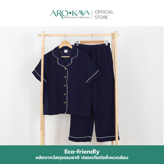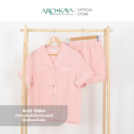 Arokaya Bamboo Nightwear ชุดนอนเยื่อไผ่ เสื้อเชิ้ตและกางเกงขาสั้น ผ้านิ่ม ใส่สบาย รุ่น Shirt&Shorts - AC2506