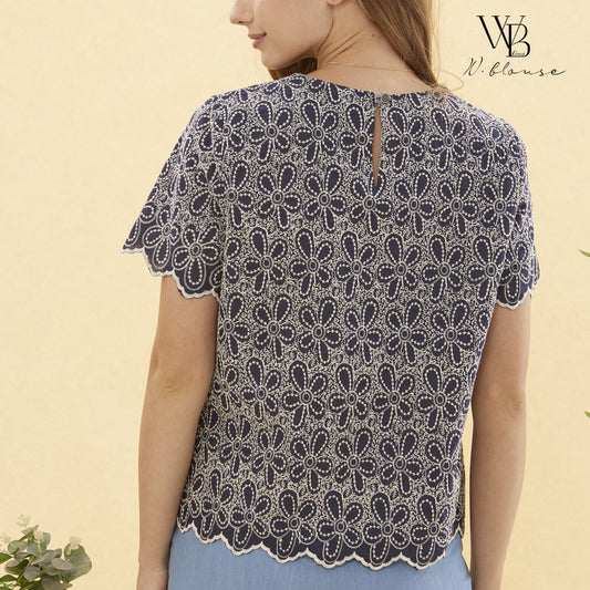 WB Lines II - เสื้อเบลาส์ดีไซน์สุภาพ ปักลายลูกไม้ สีน้ำเงินเข้ม รุ่น VY6247Y