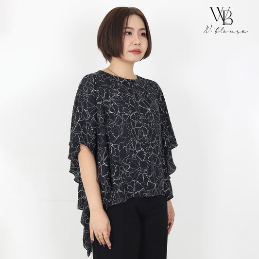 WB Lines II - Calla Butterfly-Cut Top เสื้อเบลาส์ทรงผีเสื้อลายดอกคาลล่า เรียบหรู สง่างาม สีดำ รุ่น VY63081